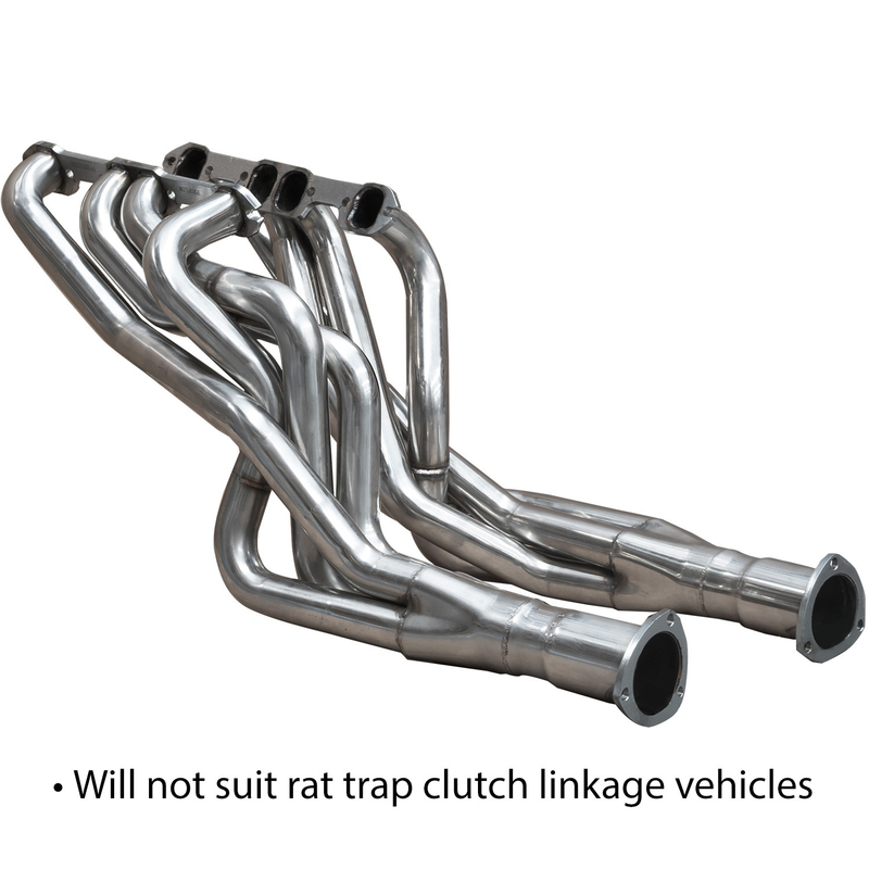 Give your car that deep, throaty note that only stainless steel headers give. Proflow’s AISI 304 stainless steel headers are manufactured from a higher percentage of chromium and nickel elements than the standard minimum composition, making them harder and more resistant to corrosion. All headers are welded in a jig to ensure no warping occurs and each flange is laser cut from 10 mm plate for high accuracy. Available for most popular V8 models and come with gaskets and bolts. 304 stainless steel headers Full length Feature 1-3/4" primary tubes, 3-1/2" collectors Use with original motor mounts to fit properly Built with surface machined thick stainless steel flanges for a great seal Mandrel bent Note: Will not fit vehicles with half cable/half linkage. Will not fit cars with factory air conditioning.