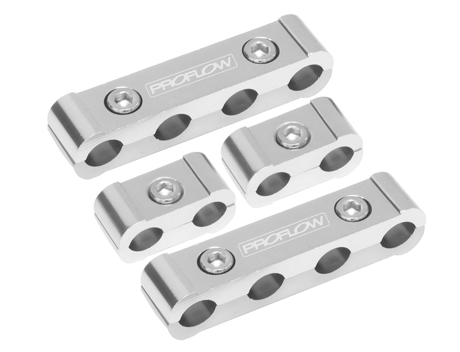 Proflow's billet lead wire loom separators are specifically designed for livewires and will not pinch or damage the protective sleeving of the lead. These kits consist of 2 x 4-hole separators and 2 x 2-hole separators and include allen keys.