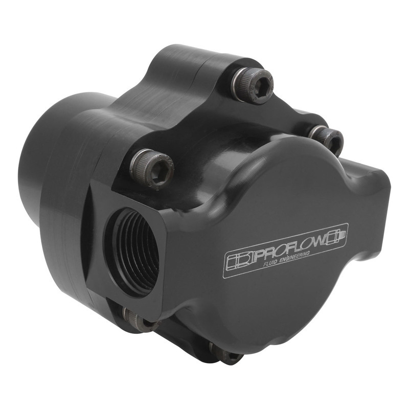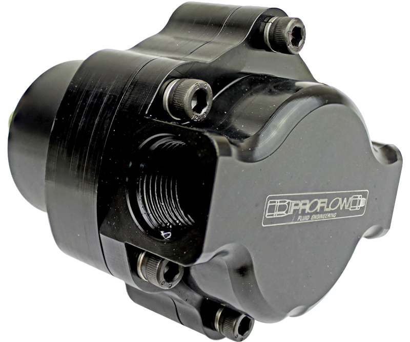 Proflow's billet mechanical fuel pump is capable of supporting up to 2500 HP, made just for serious racers. This pump solves fuel delivery problems in large power, forced induction applications as well the big powered traditional carburreted setups. Their belt-driven design means there's no current draw, and the pumps require little to no priming. Its compact size facilitates easy mounting in tight engine bay spaces and featuring -10AN ORB ports. Its black anodised body allows it to be used with exoctic fuel blends such as E85 and methanol. A minimum fuel hose line size of -10AN (7/8") is recommended to be used.