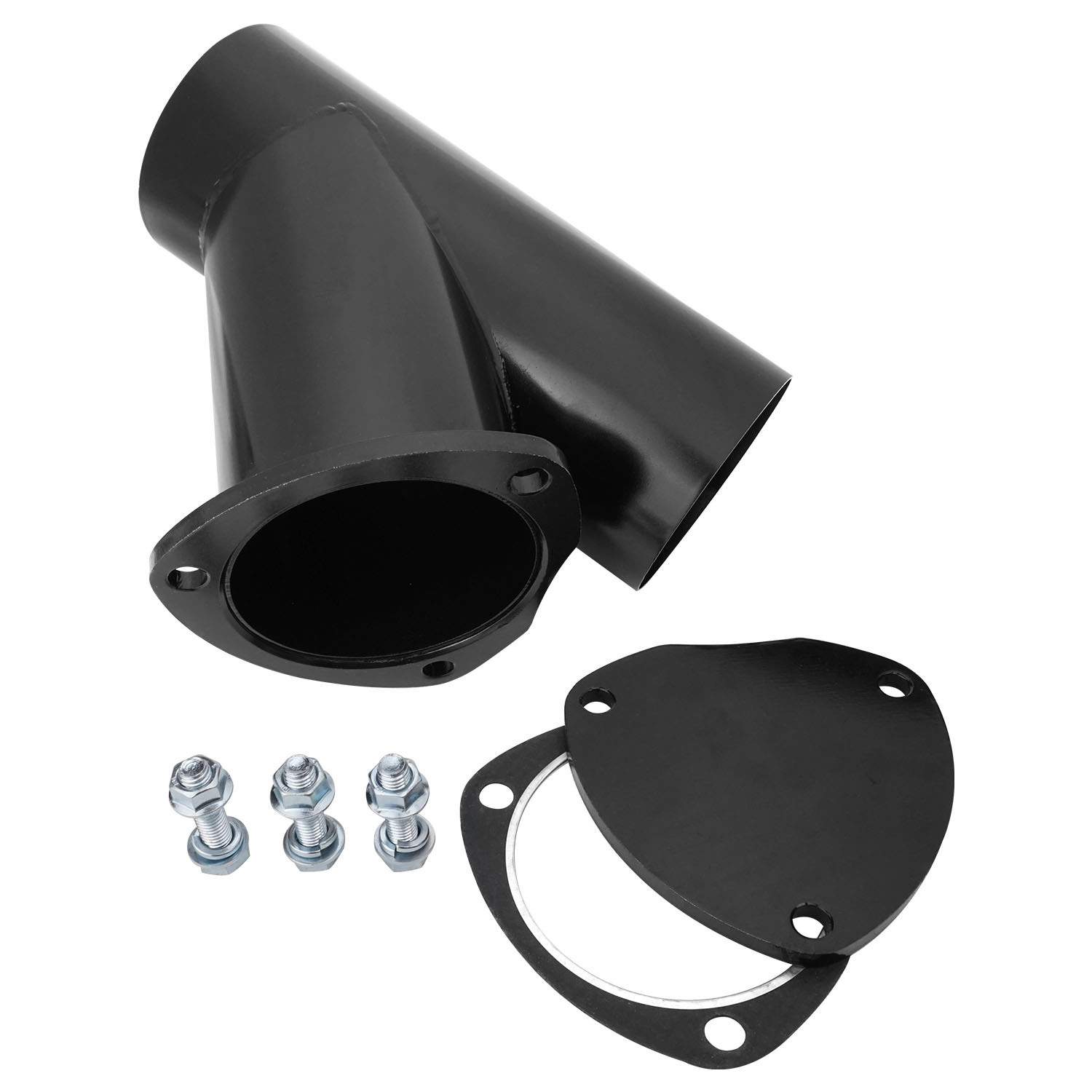 These Y-pipe cut outs are great for street cars that don't always want to be loud! Constructed from either 1.6 mm stainless steel or black coated mild steel, these Y-pipes are entirely MIG welded with an overall length of 10" and a 3-bolt header flange which is handy for quick removal. They include a block-off plate, gaskets and fasteners.