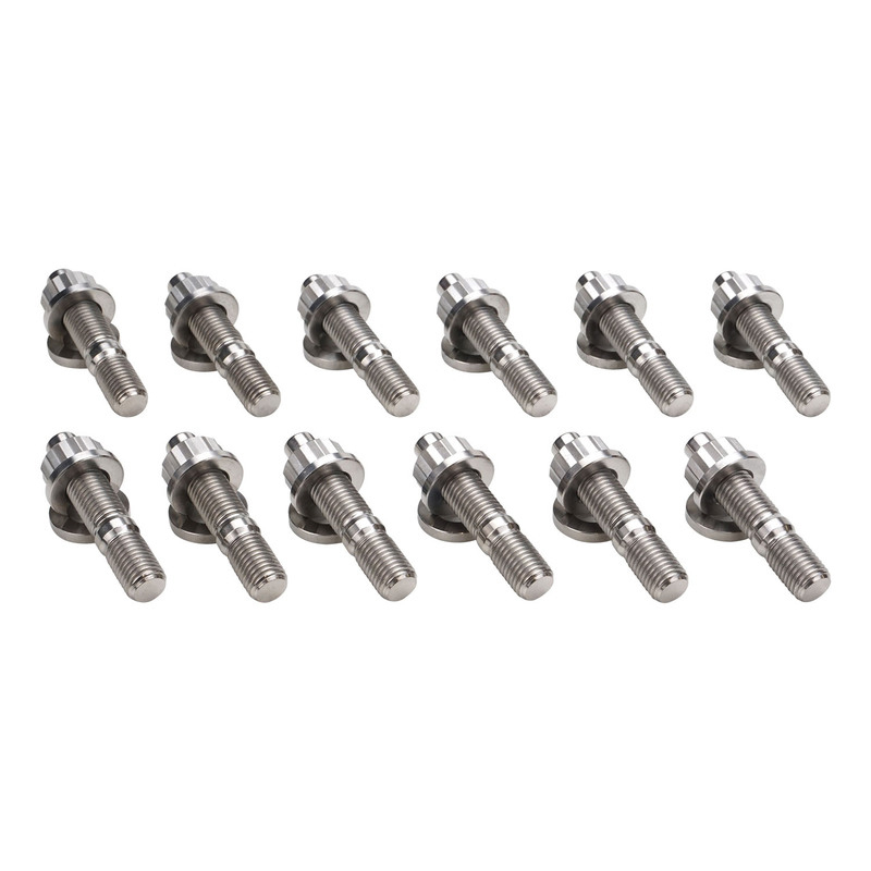Manufactured from Ti-6Al-4V Grade 5 titanium, Proflow's titanium exhaust manifold stud kits for most popular engines are a perfect upgrade over your factory studs when chasing some big power! It is common for the factory manifold studs to come loose and fail over time due to the heat cycles produced by the cylinder head, and this can become a bigger issue especially when you are using aftermarket bolt-ons such as upgraded turbochargers. These studs come with washers and 12-point nuts which provide a larger clamping force, achieved by the bigger washer diameters, decreasing the chances of these studs vibrating loose over time. They also incorporate a hex key tip that allows them to be easily installed using an allen key. The Process: Each stud begins as a solid bar of titanium, which is then heat treated and forged before they undergo machining to our exact specifications. The threads of each stud are then cold-rolled, which is a work hardening process that increases the studs yield strength and hardness. Finally, they are polished to create that great looking shine! Titanium also emits fantastic anti-corrosion properties, making these studs a great long term choice when fastening your turbo exhaust manifold. Note : Anti-seize must be applied to all threads when fastening the manifold. Please check clearance on your manifold prior to purchase.